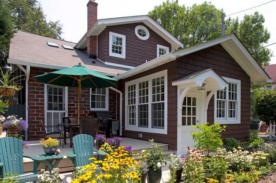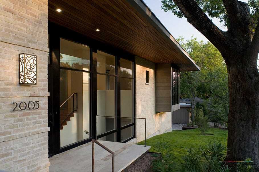 Дизайн и конструкция крыльца с навесом рассматриваются на этапе проектирования дома. Иногда входная зона обустраивается позднее, но её всё равно делают с учётом особенностей основного здания. Если крыльцо встроенное, навес над ним будет продолжением основной крыши. В других случаях форма и материалы могут варьироваться.