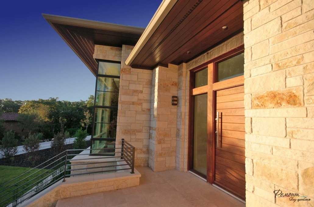 Козырек из этого материала зачастую устанавливают еще на этапе постройки дома. Это помогает сделать крышу, вместе с козырьком в одном стиле, что выглядит очень гармонично. Такие конструкции всегда очень долговечны и при этом не требуют особого ухода.