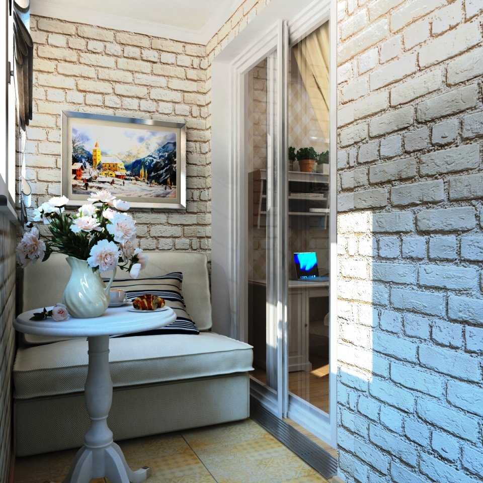Принципы отделки для балкона отличается от других помещений. При выборе материалов нужно учитывать отсутствие отопления. Хорошо подходят для отделки пвх панели. Если позволяют средства, можно заменить их на дерево. Также стены можно украсить декоративной штукатуркой или кладкой из камня. Для хорошо утепленных балконов можно использовать обои.