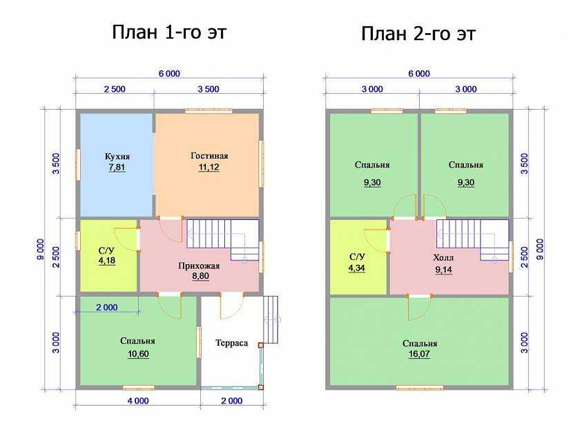 Планировка двухэтажного дома 6 на 9Источник drevolog.ru