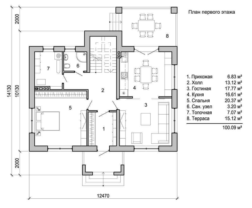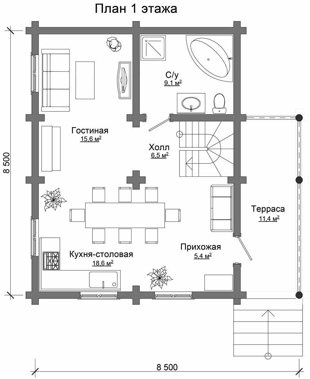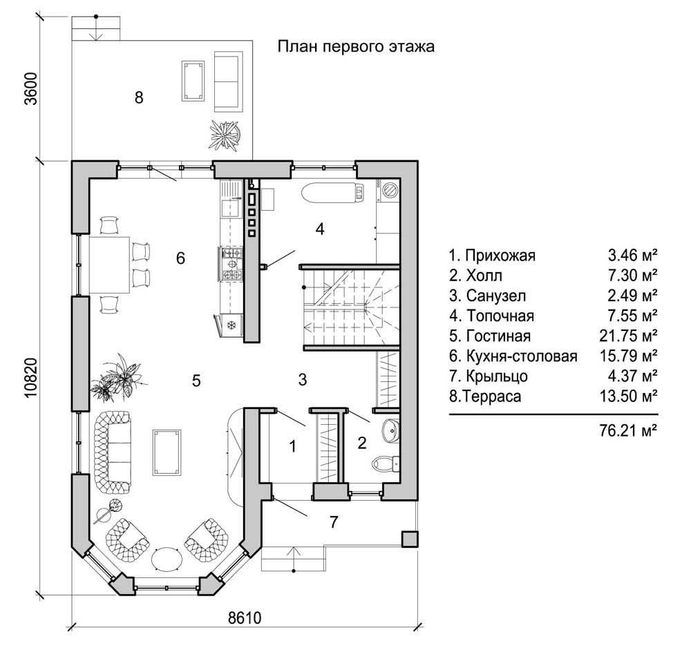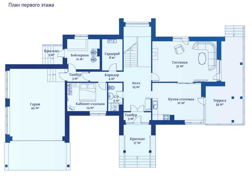 План первого этажа разрабатывается с учетом потребностей конкретной семьи