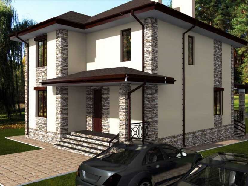 Проект 5. Фасад двухэтажного дома 9х9 м из газобетона