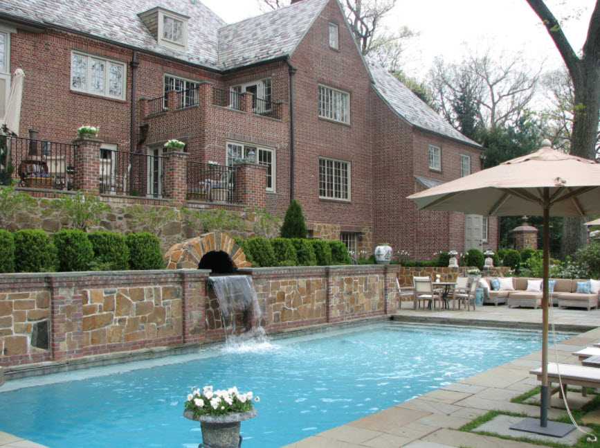 - Барокко. Дом, кричащий о роскоши, не сможет обойтись без кирпича. Здесь используют только самые дорогие и яркие виды кирпича, способные подчеркнуть богатство дома, состоятельность его хозяина. Зачастую кирпич комбинируют с диким камнем.