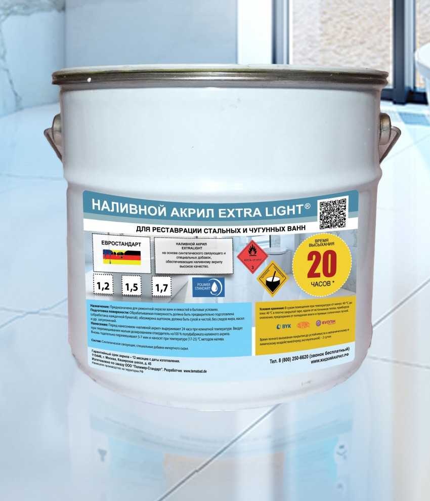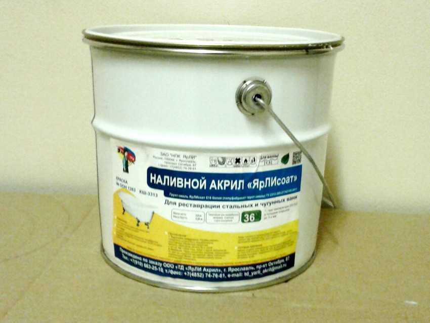 Акрил отличается высокой прочностью и долговечностью, легко наносится наливным методом. Подойдет также для наружной покраски ванны. На процесс покраски уходит 2-3 часа, с учетом предварительной подготовки.