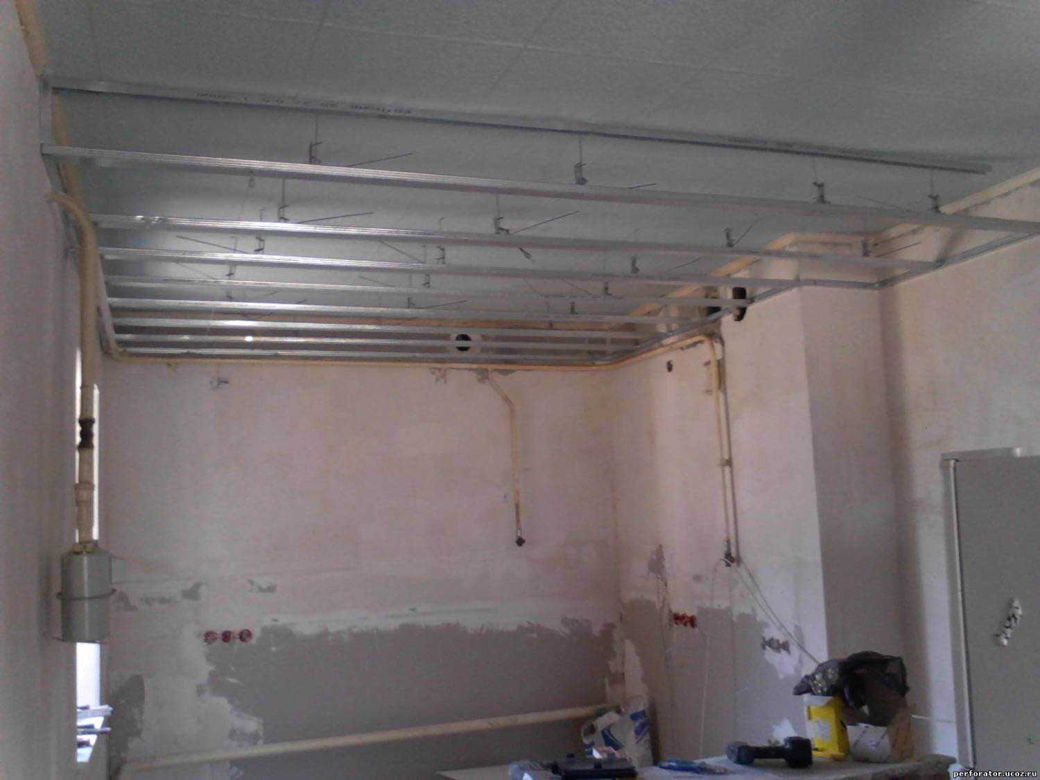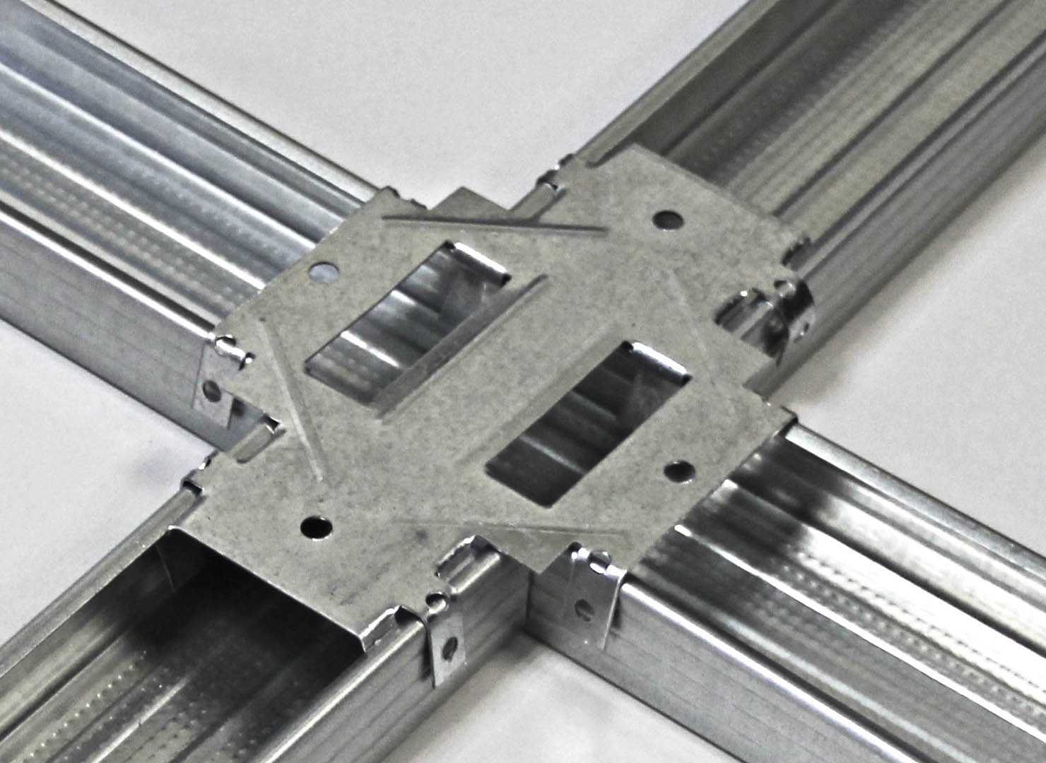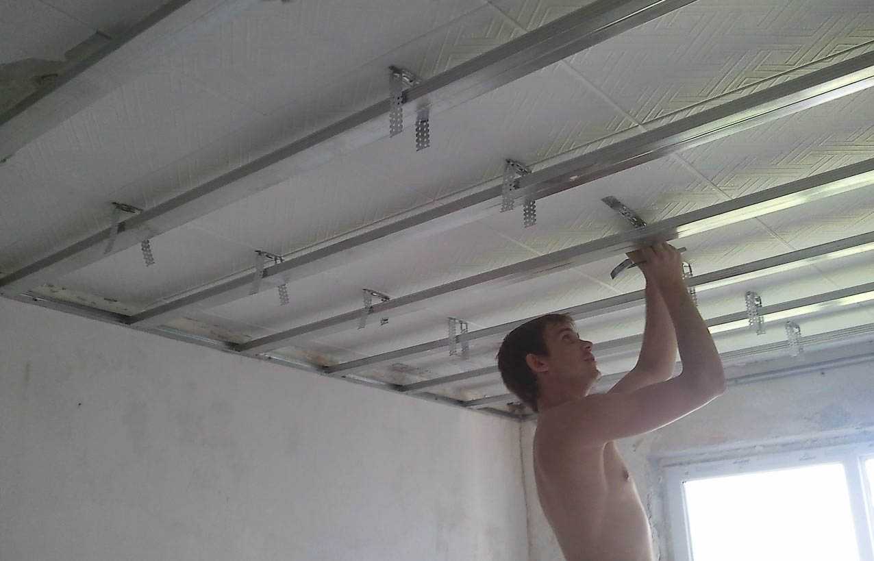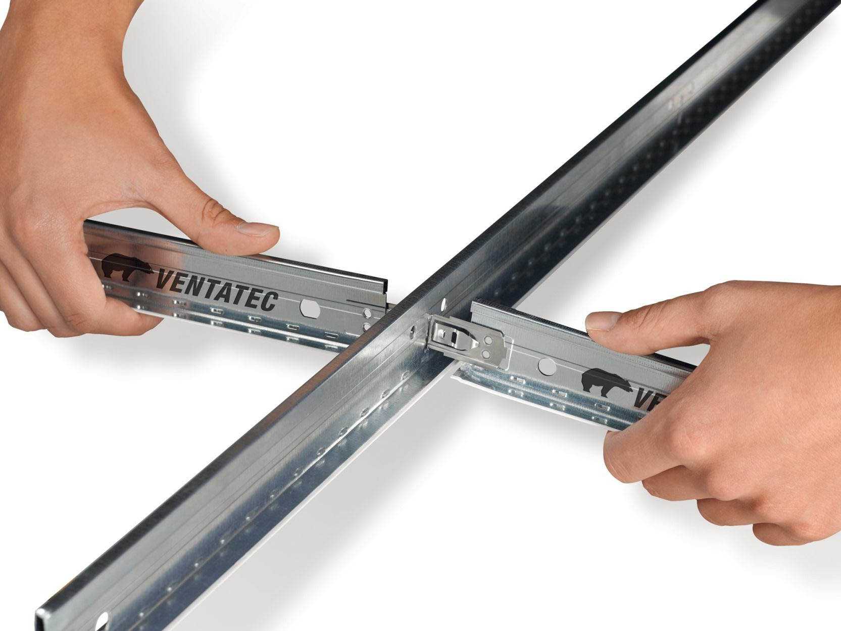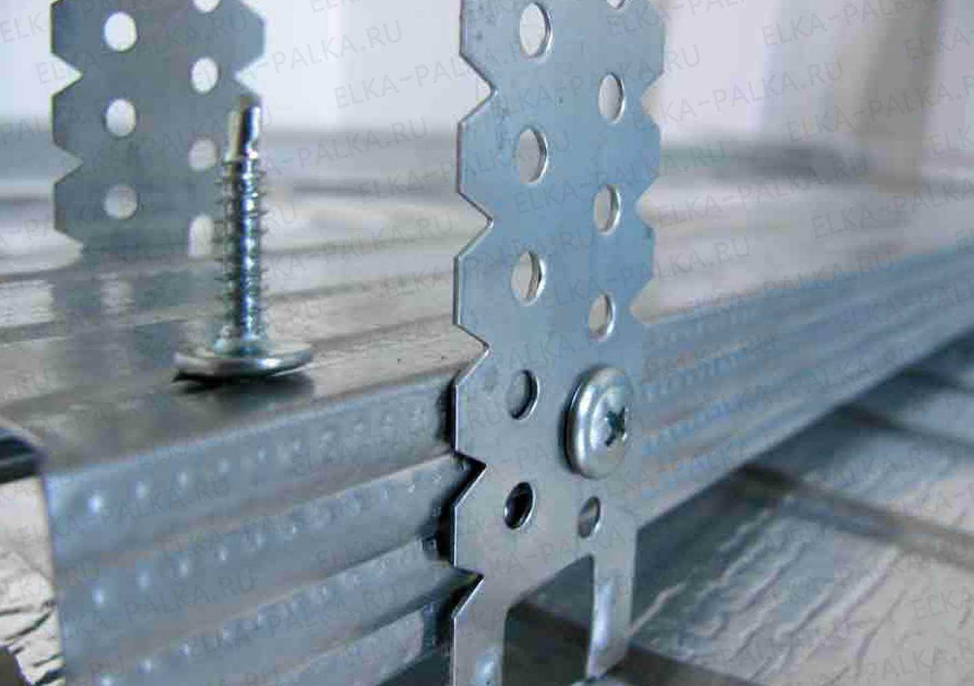 - в обратной ситуации — когда помещение оказывается значительно длиннее — профиль можно нарастить при помощи обычного соединительного крепежа, при этом обязательно нужно учитывать тот факт, что стыки у соседних профилей не должны быть на одной линии, а подвес должен находиться рядом для предупреждения обрыва конструкции;