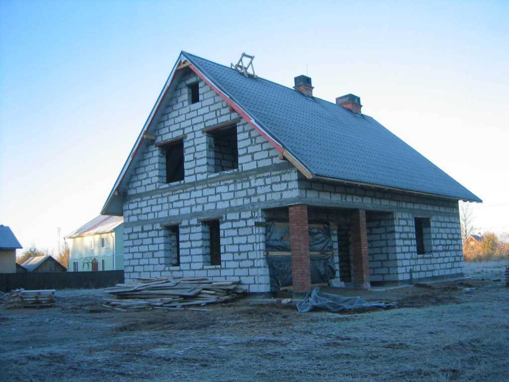 Стену дома можно легко повредить одним резким ударом большой силы. Стены компактного дома, сложенные из блоков, изготовленных путем нарезания, необходимо тщательно защищать от прямого воздействия влаги. В противном случае ячеистый материал будет впитывать ее в себя и разбухать. Это обязательно приведет к появлению трещин. Небольшой вес блоков является и преимуществом материала, и его недостатком: дом возводится быстро и легко, но несущая способность стен в два раза меньше стен кирпичных. Это нужно учитывать при расчете конструкции дома с мансардой.