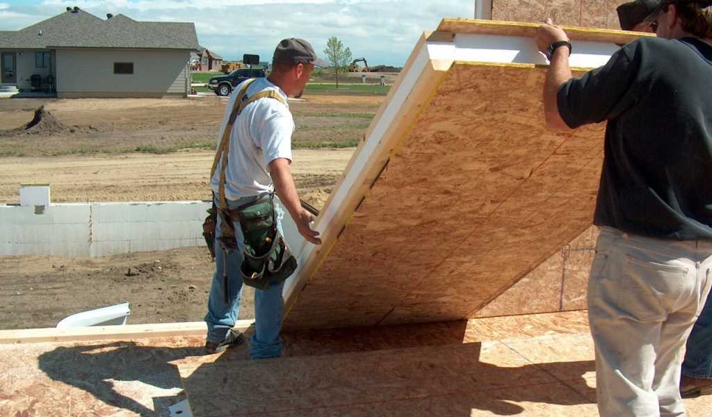 По соотношению цена-качество одноэтажные дома с мансардой, возведенные по каркасной технологии, считаются наиболее оптимальными. Сегодня это самый доступный вариант строительства собственного жилья. Бригада мастеров, состоящая из трех человек, построит дом обозначенных размеров всего за месяц или полтора. После того, как каркас будет собран, он обшивается специальными панелями, структура которых похожа на многослойный пирог: две стороны – лицевая и внутренняя – у них изготавливается из ОСП, между ними прокладывается слой утеплителя (пенополистирола). Все три слоя склеиваются между собой под воздействием высокого давления. В результате получается монолит, который обладает высокой прочностью. Сама панель может легко выдержать вес внедорожника.