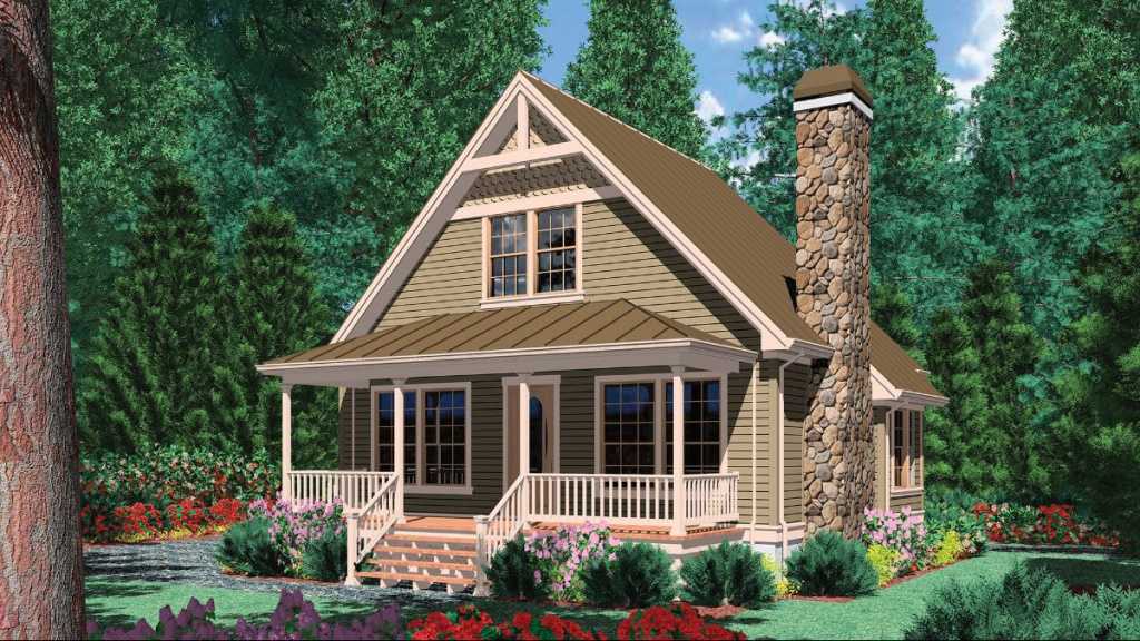 Коттедж небольшого размера не обязательно должен быть квадратным по форме. Он может иметь оригинальную конфигурацию. Представленный ниже проект деревянного дома 6х6 с мансардой демонстрирует возможность построить небольшой коттедж с эркером.
