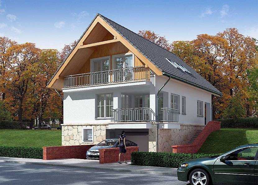 - надземный нижний гараж располагается в основании дома, таким образом, чтобы все жилые помещения оказались как бы над ним. Этот способ также эффективен в вопросе сохранения пространства территории, однако, в этом случае повышается высота дома;