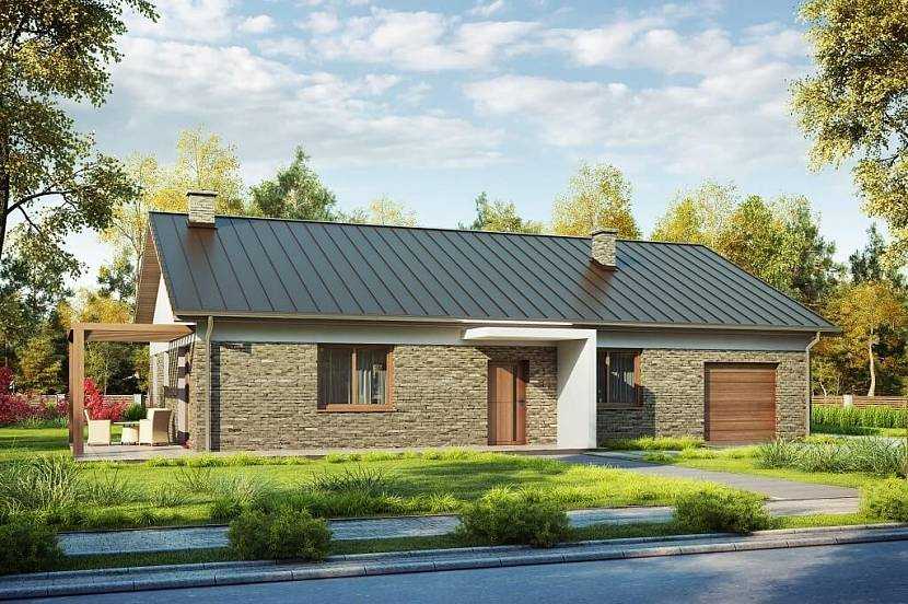 Одноэтажный дом с гаражом, построенные на одном фундаменте и под одной крышей, – это практичное решение жилищного вопроса. Плюсы таких проектов: