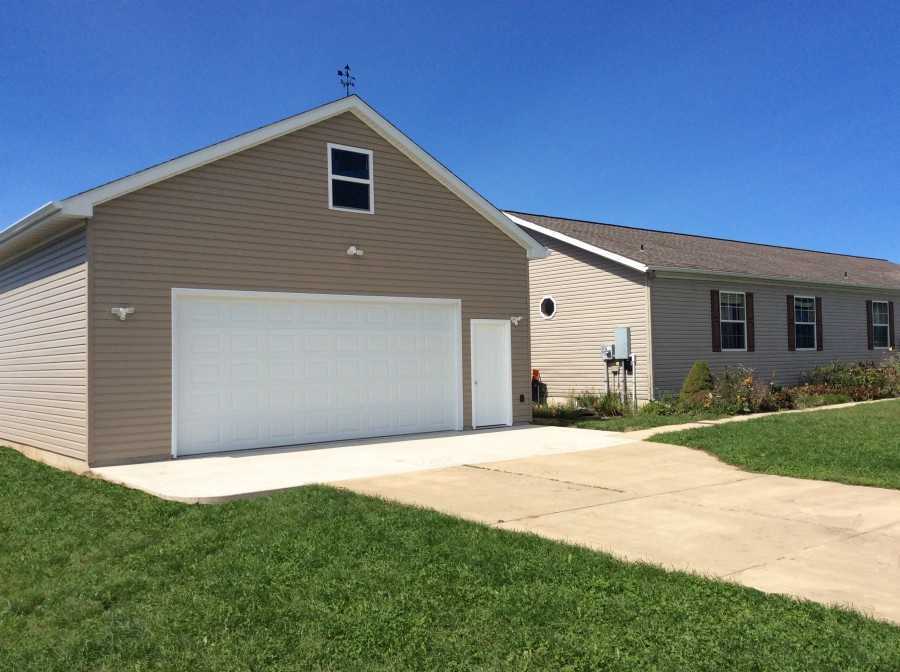 Боковой наземный гараж считается одним из самых практичных и удобных вариантов размещения подсобного помещения для машины