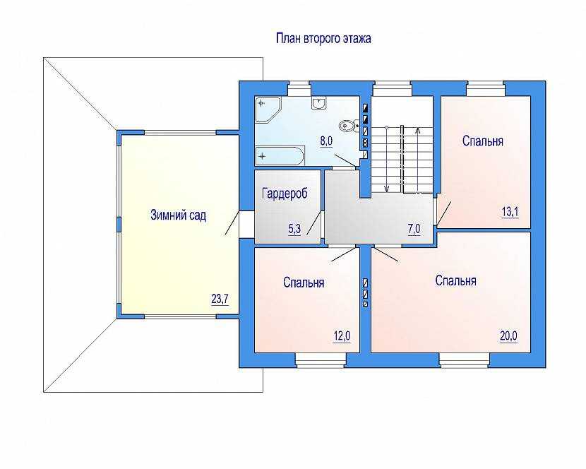 Для удобства проживания применяется зонирование. Общая площадь этажа делится на две части:
