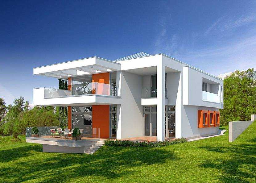 - Быстрое строительство. Готовые проекты адаптированы к местным условиям. Заказчику не придется тратить время (и финансы) на геологическое исследование почвы, замеры, расчеты, исправления и доработки. Дом в современном стиле с простой геометрической формой – идеальный вариант, если вы хотите поскорее въехать в коттедж.