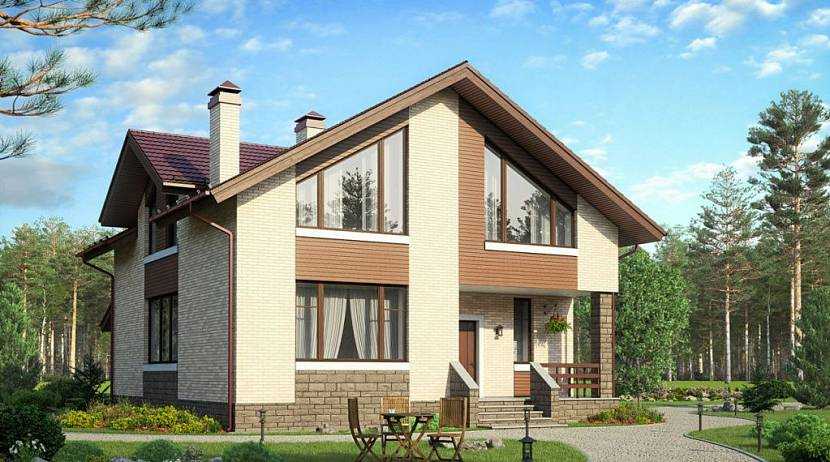 Кирпичный дом 147 кв. м с комбинированным фасадомИсточник oooarsenal.ru