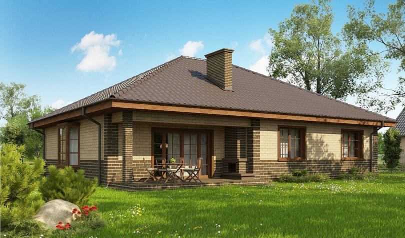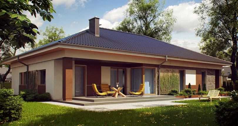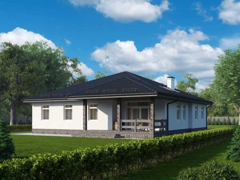 В качестве наглядных примеров приведены фото новинок, разработанных архитектурными бюро по самым частым запросам потребителей. Это только эскизы того, как может выглядеть одноэтажный дом, на который потрачено чуть больше денег, чем при режиме строгой экономии. Авторы проекта могут перепроектировать применение строительных материалов, планировку, расположение террасы или подсобных помещений, добавить или убрать количество входов.