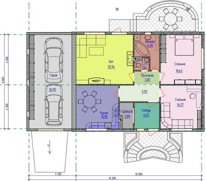 Особенности проектов одноэтажных каркасных домов с гаражом