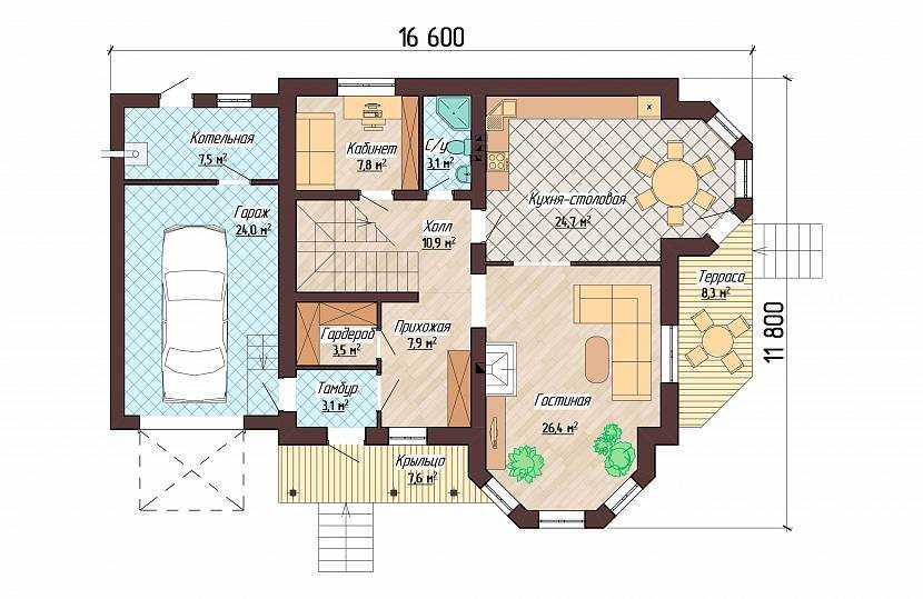 Следующий этап — наполнение концепции материальными объектами. Подумайте, что обязательно должно быть на квадратных метрах: как для удобства нахождения в них, так и для превращения в дом, куда хочется возвращаться. Барная стойка или стол, душ или ванная, вместительный гардероб или шкаф-купе, полноценнная рабочая зона или подставка для ноутбука, зимний сад или игровая зона… Решать хозяевам. Так станет понятно, какие функциональные зоны являются первостепенными, и какие условия для их обустройства необходимы.