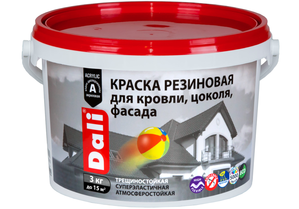 - «Dali». Краска отечественного производителя. Подходит для наружных и внутренних работ. Ею покрывают черепичную или шиферную крыши, бетон, цементные плиты, кирпичные стены, оцинкованные и загрунтованные стальные листы. Рекомендуется окрашивать в два слоя, срок высыхания каждого – 1–2 часа. Обладает высокой влагостойкостью. Минусы: небольшой срок эксплуатации (5 лет), небольшая палитра цветов, расход больше заявленного.