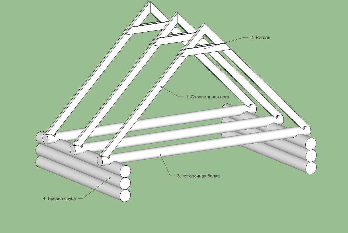 Стропильные ноги должны выходить наружу примерно на 50 см. Благодаря этому будет исключена возможность попадания влаги с кровли на стены строения.
