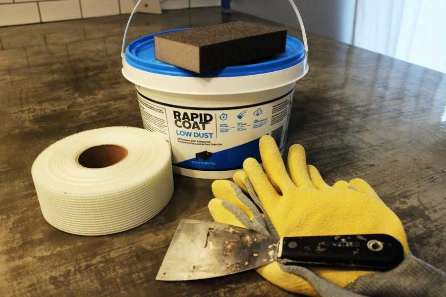 Отдельно поговорим о том, как шпаклевать стыки. Если помните, до процесса грунтования мы подрезали и углубляли участки. Перед тем, как шпаклевать такие швы, их армируют.