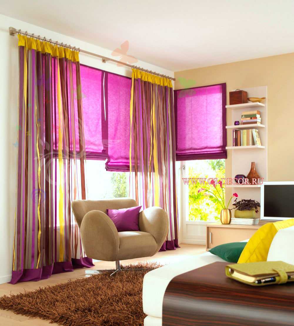 Очень важной деталью дизайна являются шторы. Ткань для них выбирают самых ярких тонов
