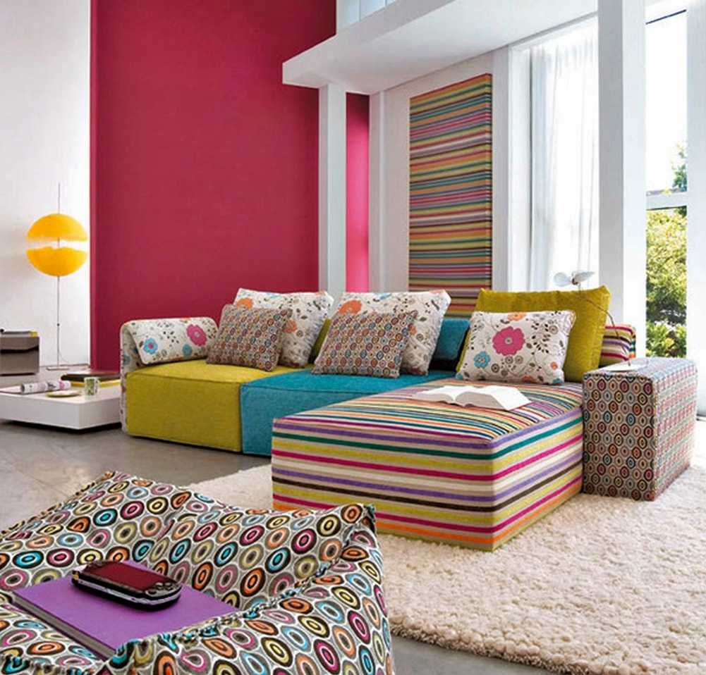 Допустимо, чтобы потолок, пол, мебель и стены были совершенно в разных, даже в самых не сочетающихся друг с другом цветах.