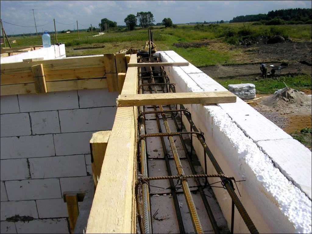 Пример устройства армирующего пояса при строительстве дома из пеноблоков