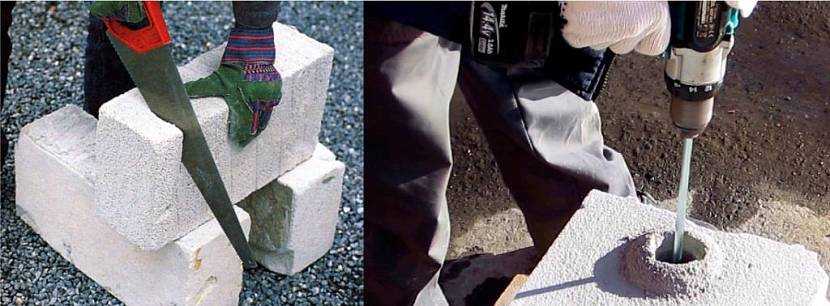 Те, кто знает, как строить с пеноблоков грамотно, отмечают, что однообразие формы и размеры камней не является проблемой. В случае, когда блок необходимо подогнать под размеры или придать ему особую форму, он легко поддается обработке болгаркой, или специальной ручной пилой.