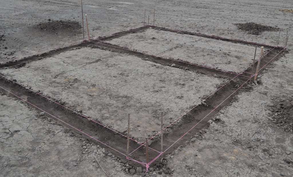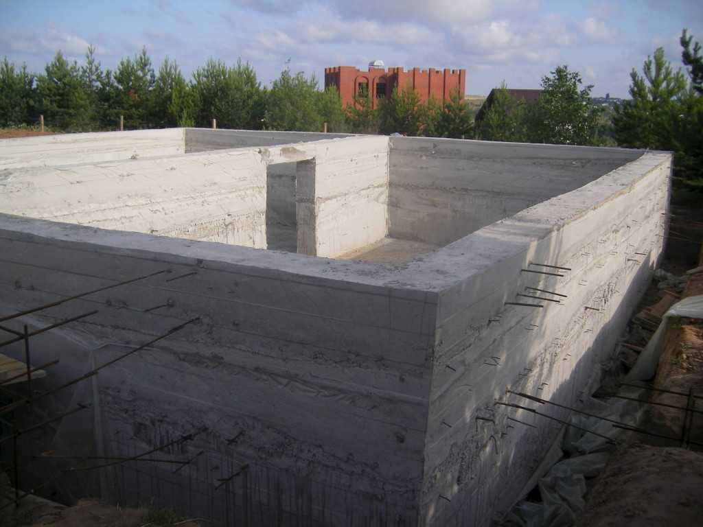 Первым делом на участке необходимо подготовит и разметить место под фундамент. Разметка выполняется исходя из проектной документации. Колышки вбиваются по внешним и внутренним углам фундамента, и по ним натягивается прочная нитка. Затем копается траншея на глубину, зависящую от глубины промерзания почвы и в зависимости от количества этажей в будущем доме. На дне траншеи делается песчаная подушка толщиной 15-20 см и хорошенько утрамбовывается. На вырытой траншее сверху устанавливается опалубка. Внутри траншеи и опалубки укладывается и вяжется арматура, диаметром соответствующим проектным данным для данного строения. Опалубка крепко закрепляется и в нее заливается бетон. После застывания бетона проводят гидроизоляцию фундамента путем обмазки различными мастиками.