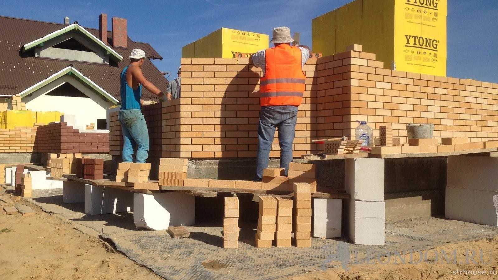 - Необходимость привлечения каменщиков для кладки дома. Строительство кирпичных стен не является простой задачей, поэтому часто для таких работ привлекают наемных рабочих соответствующей квалификации. Труд каменщиков оплачивается достаточно высоко.
