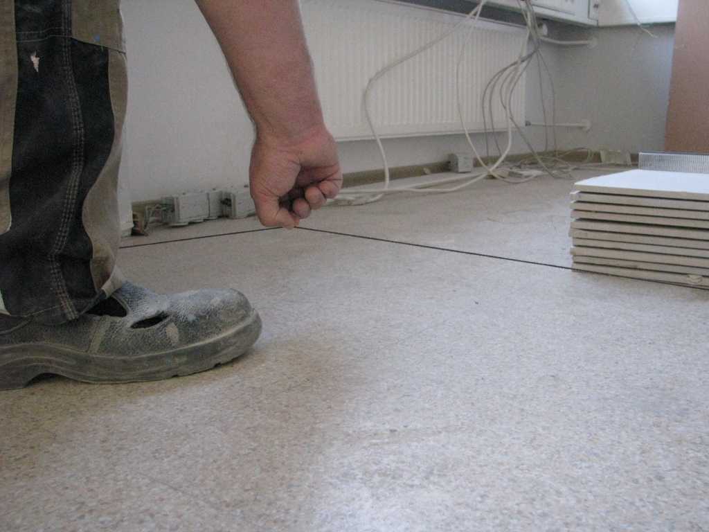 С помощью маркировочной веревки (отбивки) отбиваем линию.