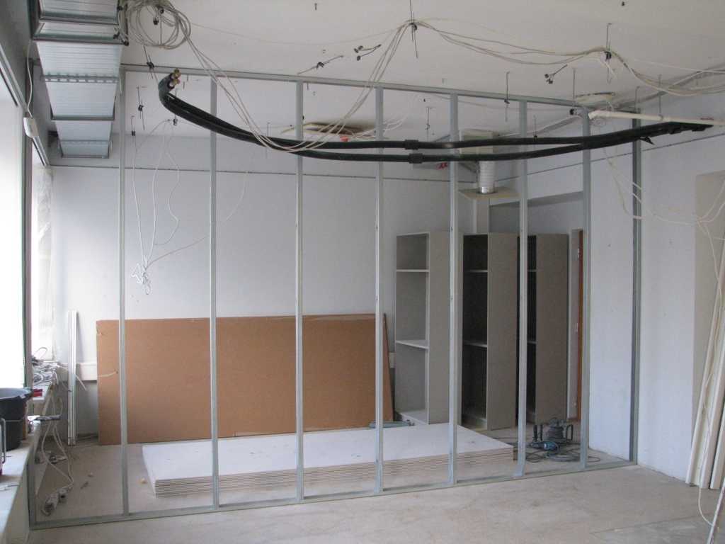Во-первых, если в конструкцию включена дверь, перегородка будет слегка вибрировать во время открывания. Чтобы это «слегка» не стало проблемой, нужно крепить металл между собой, к стенам, полу и потолку действительно хорошо, так как положено по требованиям технологии!