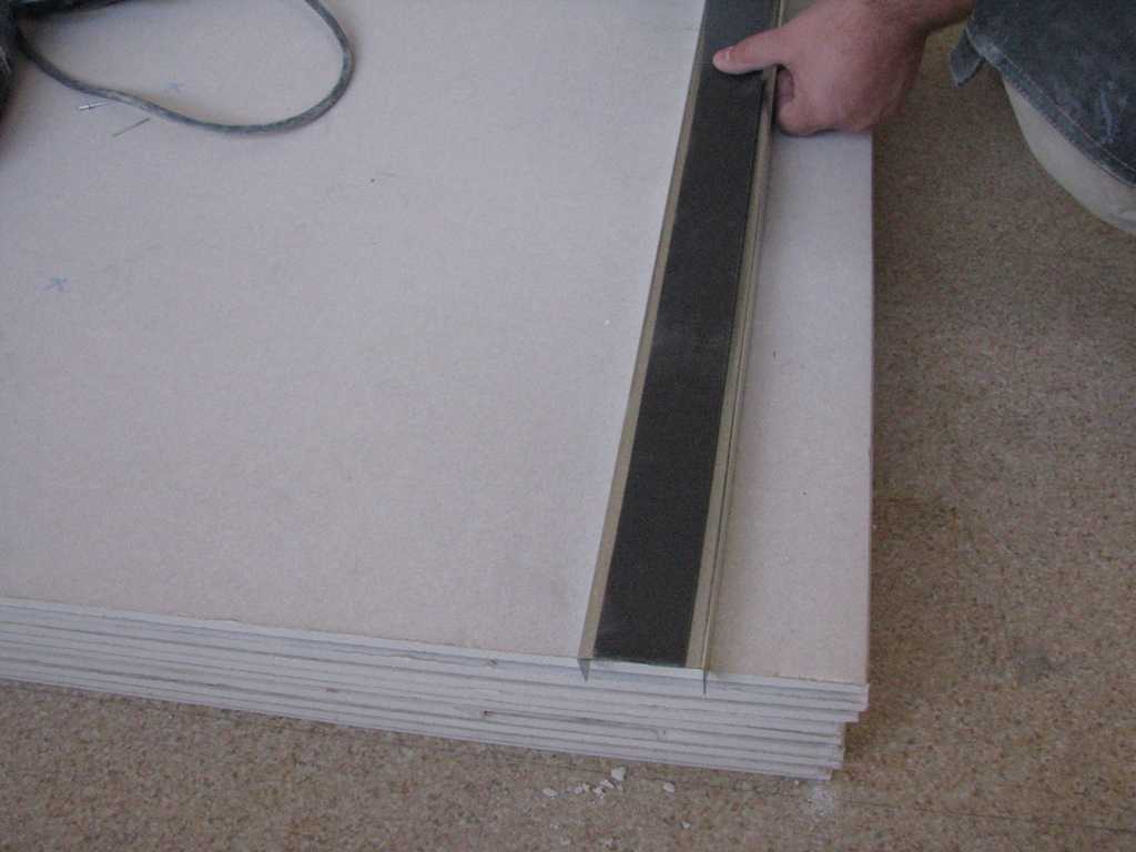 - далее в этот профиль, который играет роль опоры, вставляем направляющий профиль вдоль стены. Он должен идти строго по вертикали;
