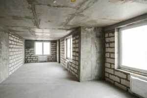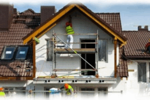 - Фасад дома очищаем от остатков отделки – краски, отслоений штукатурки, шпатлевки и т.д. Места отслоений зачищаем – так, чтобы при установке кронштейнов для каркаса из стены не вываливались фрагменты.