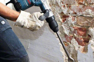 - По разметке с помощью перфоратора бурим отверстия под крепеж.
