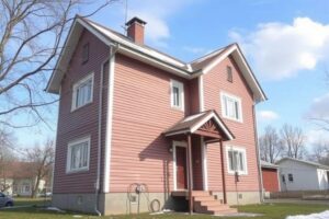 - На фото изображен вентилируемый фасад с обшивкой из блок-хауса