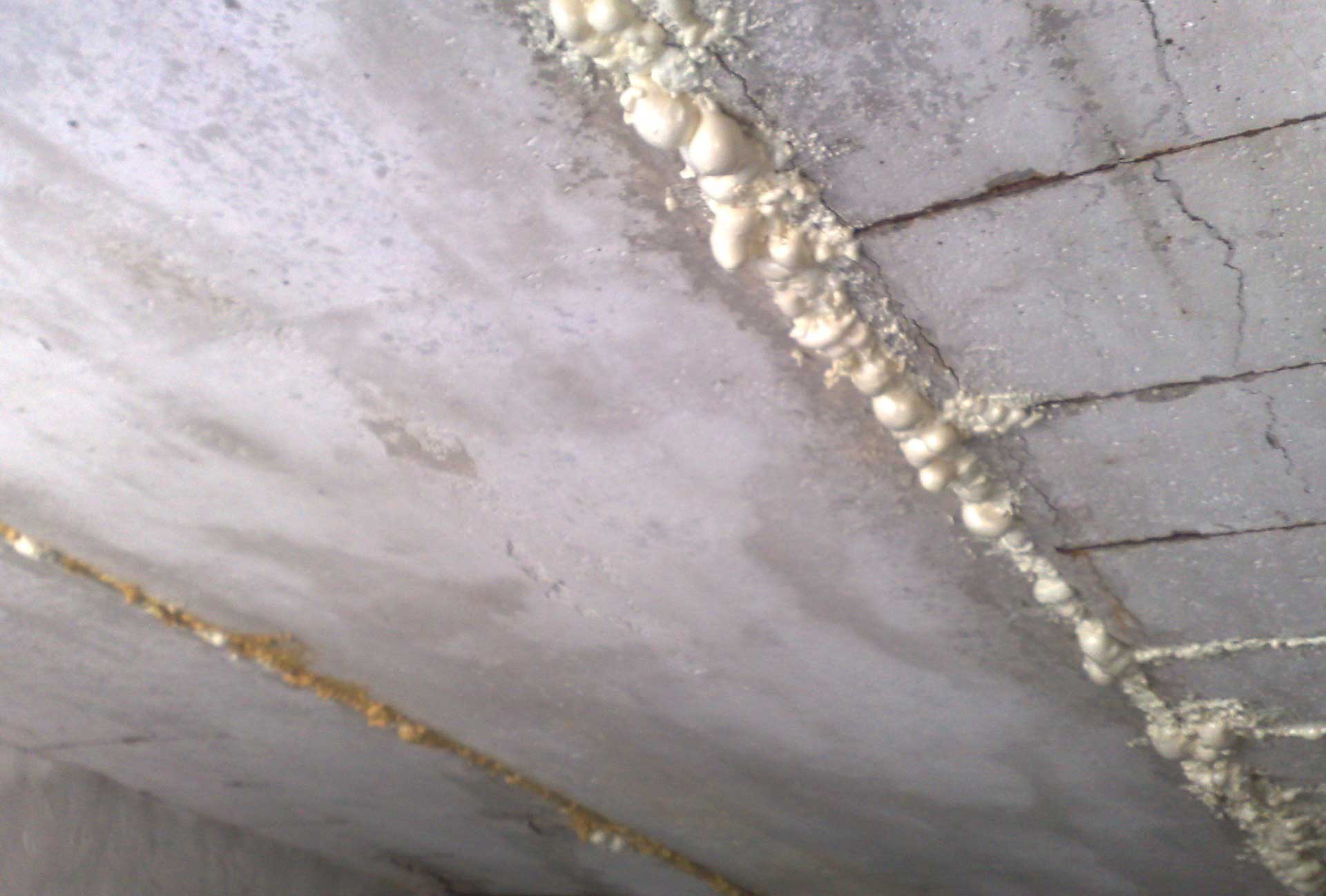 Часто на потолке остаются следы ржавых подтеков, их необходимо обработать веществом против ржавчины. Отслаивающиеся куски шпаклевки счищают шпателем. Швы зачищают от штукатурки и удаляют остатки цемента и пыль. Для подобных работ может потребоваться перфоратор, им удаляют наслоения или расширяют швы. Идеальные швы перекрытия должны иметь П-образную форму. Когда шов расширен, его очищают кисточкой и протирают влажной тряпкой от пыли.