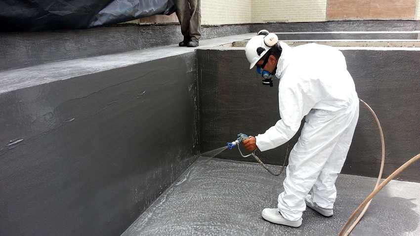 Гидробарьер создают с помощью валика, кисточки, краскопульта, формируют слой до 3 мм толщиной