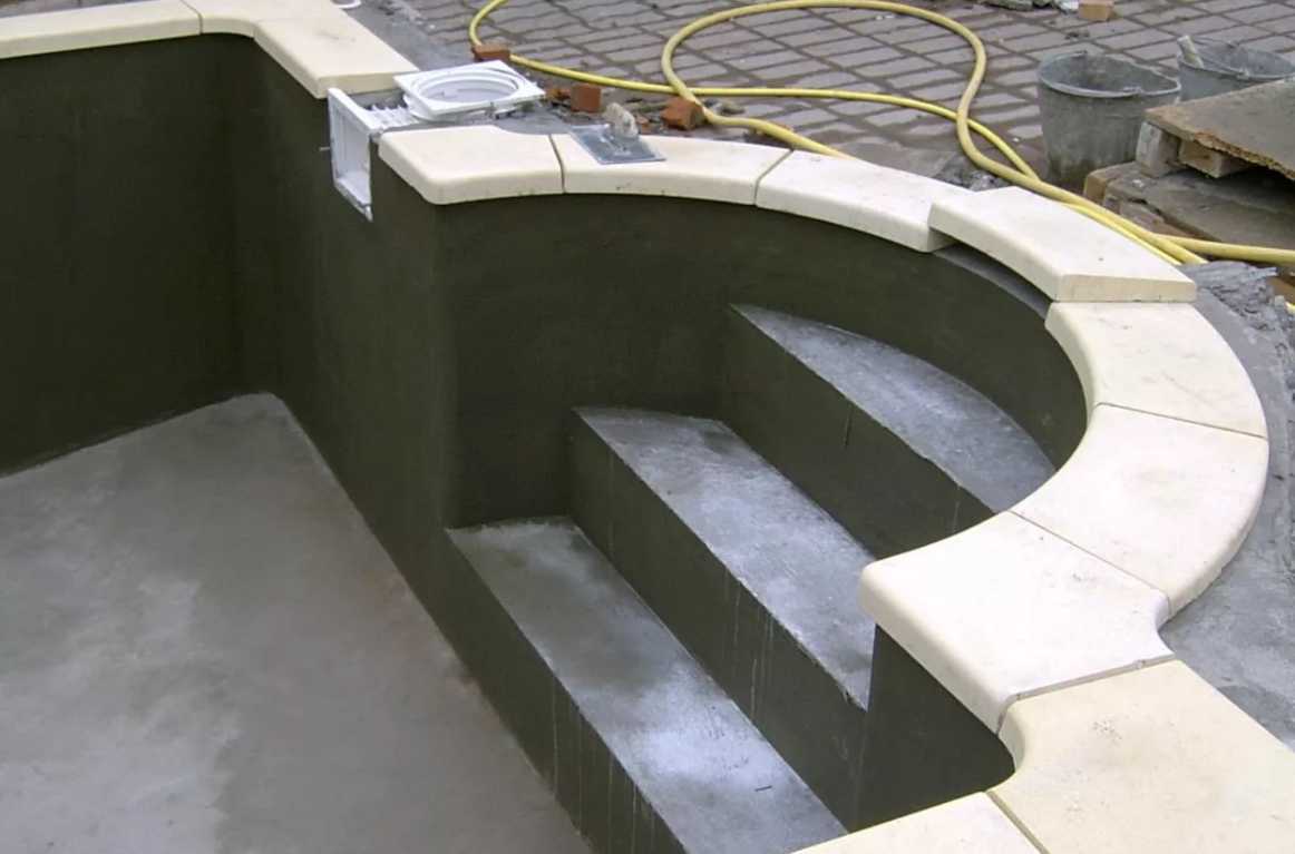 По технологии проникающей изоляции предварительно герметизируют стыки, швы, трещины, небольшие дефекты и поры бетона изнутри. Обмазка применяется для наружной защиты. Делают густой, пластичный раствор, смесь наносят в 2–3 слоя. Затем проводится обмазочная гидроизоляция бассейна жидким стеклом.