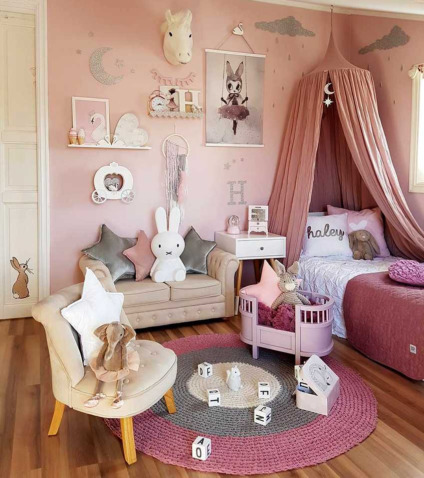 Несмотря на бытующее мнение, что балдахин уместен только в больших апартаментах, подойдет он и для маленькой комнаты. Характерным примером выступает узкая детская. Расположение кровати у стены экономит место; занавеси крепят к стене или потолку, они могут закрывать спальное место как полностью, так и наполовину. Для балдахинов выбирают яркие ткани, украшенные клеткой, узорами или контрастными деталями – так детская будет смотреться ярко и живо.