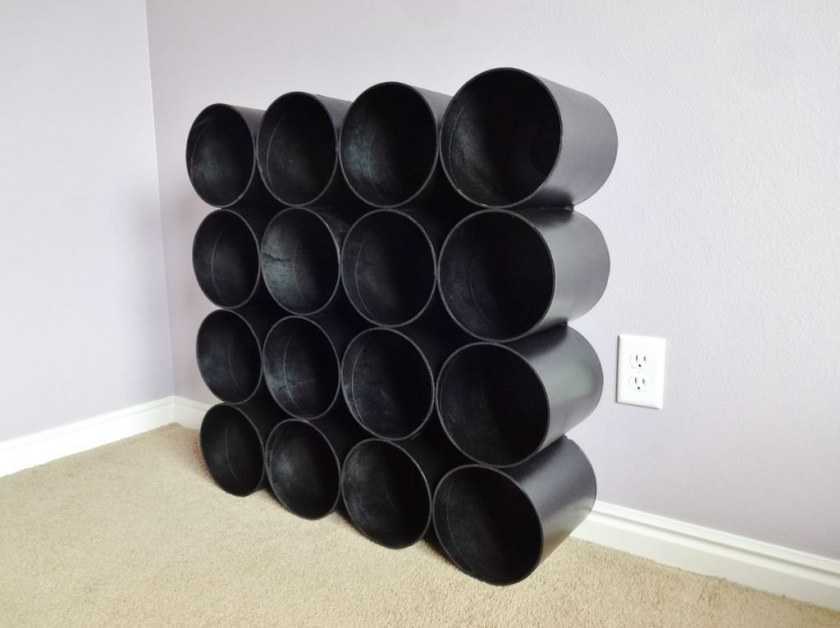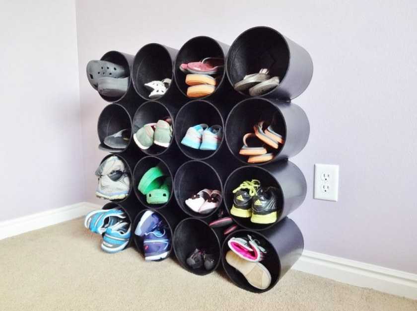 Дешевый способ при изготовлении полок для обуви — пластик. Пластик, легкий в уходе, но слишком хрупкий и недолговечный. К такому разряду относятся трубы ПВХ используемые для канализации, пластиковые бутылки, но такие обувницы просты, но не имеют эстетического вида.