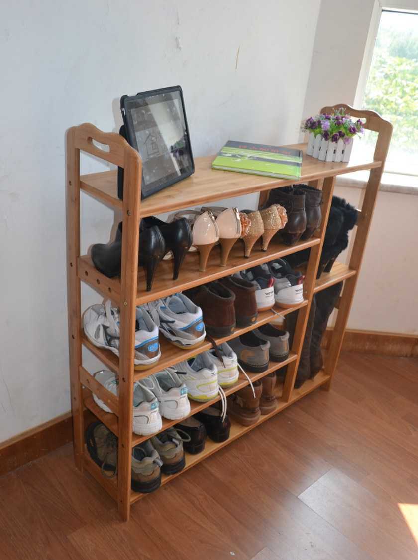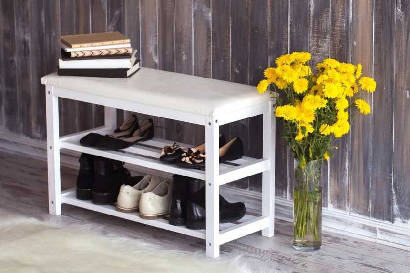 Самый надежный и удобный вид материала — древесина. Шкафчик или полка для обуви выполненная из дерева долго прослужит, не требуя замены. Из древесины можно соорудить полку, шкафчик, тумбу для хранения обуви.
