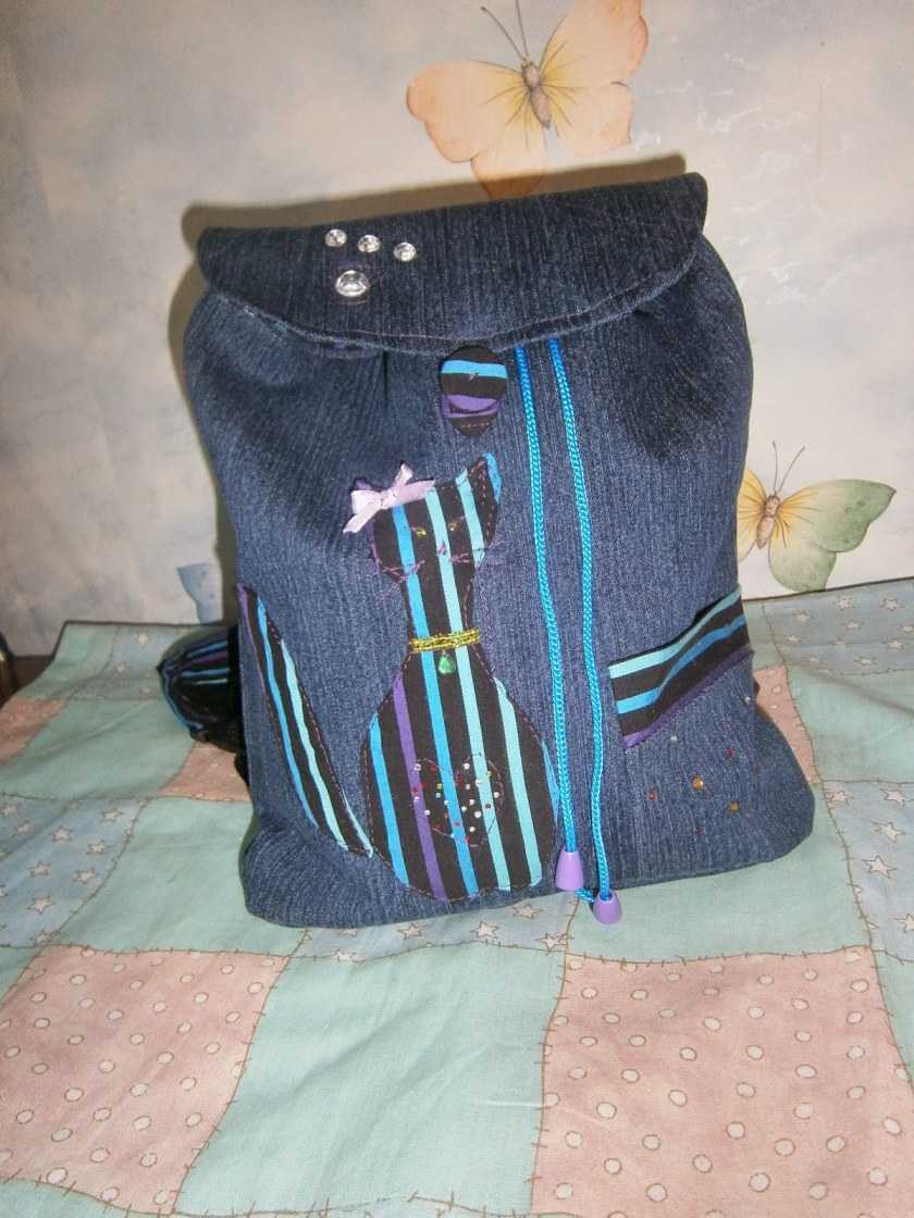 - Джинса. Выкройка рюкзака из старых джинсов – это наиболее частая модель, которую можно найти в свободном доступе.