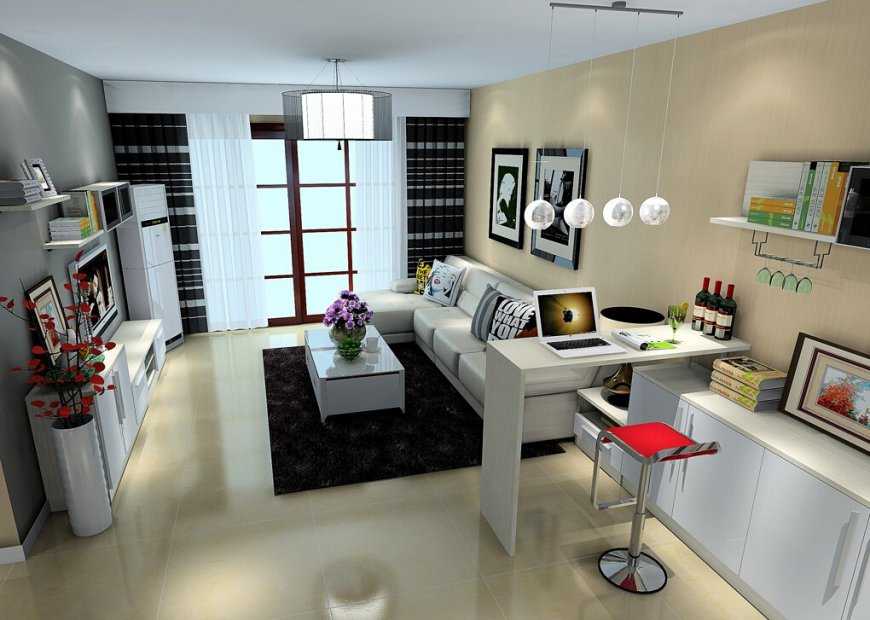 В квартирах, где кухня и гостиная объединены, такая стойка может стать незаменимым элементам обустройства и зонирования. Обычно более низкую сторону устанавливают со стороны кухни, а высокую — со стороны гостиной.
