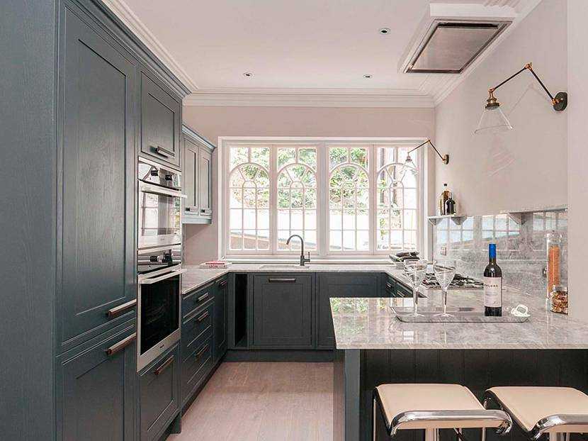 Маленькая П-образная кухня располагается в помещении квадратной формы или прямоугольном. В узких «коридорных» планировках её разместить нельзя, там больше подойдёт линейная компоновка. К счастью, большинство старых квартир, а также некоторые современные, где габариты кухонного помещения не впечатляют, имеют как раз квадратную и прямоугольную форму для кухни. Вот некоторые принципы планировки: