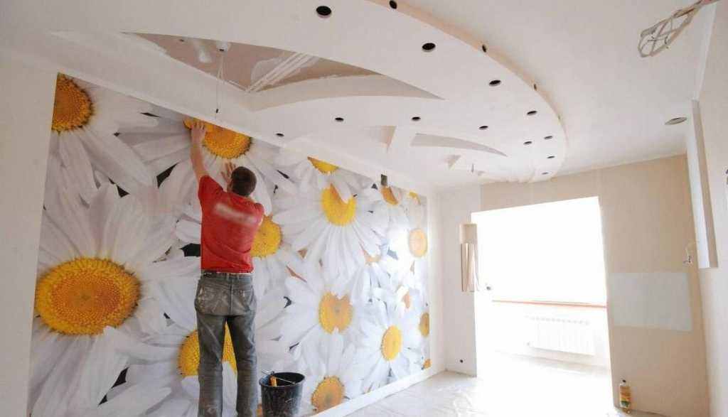Рассмотрим плюсы и минусы очерёдности установки потолка и оклейки обоев