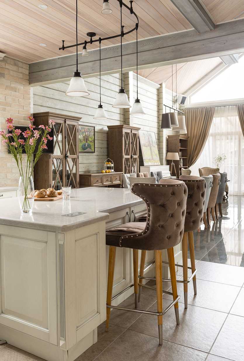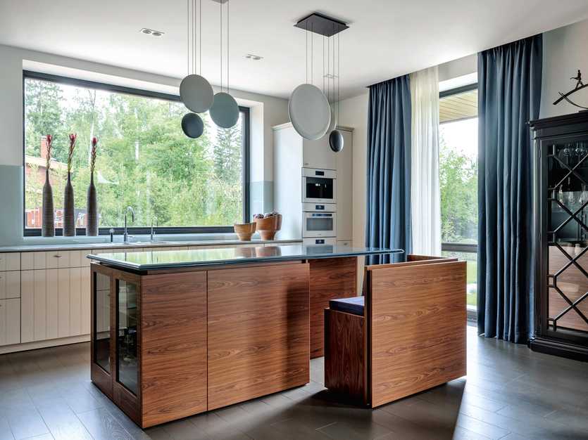 Оформить кухонное пространство в большом доме значительно легче. В этом случае рекомендуется следовать собственным цветовым предпочтениям без особых ограничений.