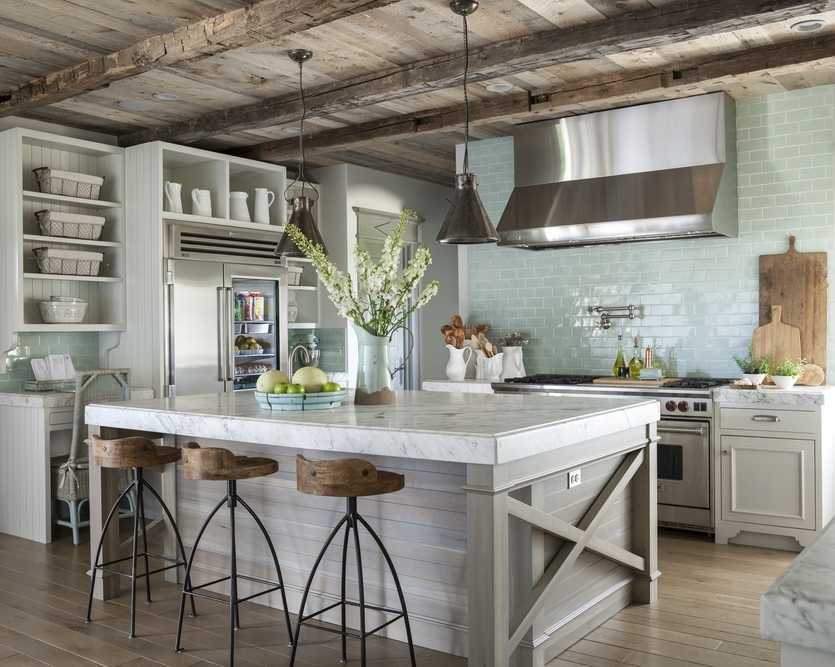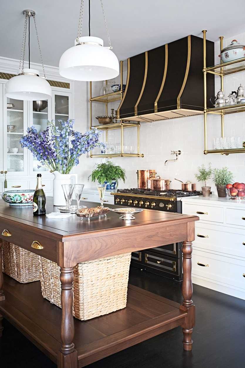 Кроме того, для оформления кухонного пространства остаются крайне актуальными и хорошо дополняют любую палитру все тона дерева и цветные металлы.