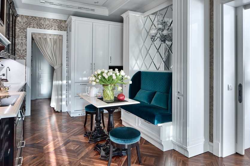 Если нет боязни этого роскошного холодного оттенка, то он поможет в расширении малого пространства и даст ощущение лёгкости.