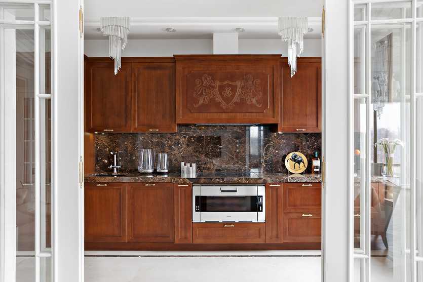 Коричневая кухня всегда ассоциируется с деревом, а значит с чем-то деревенским и уютным